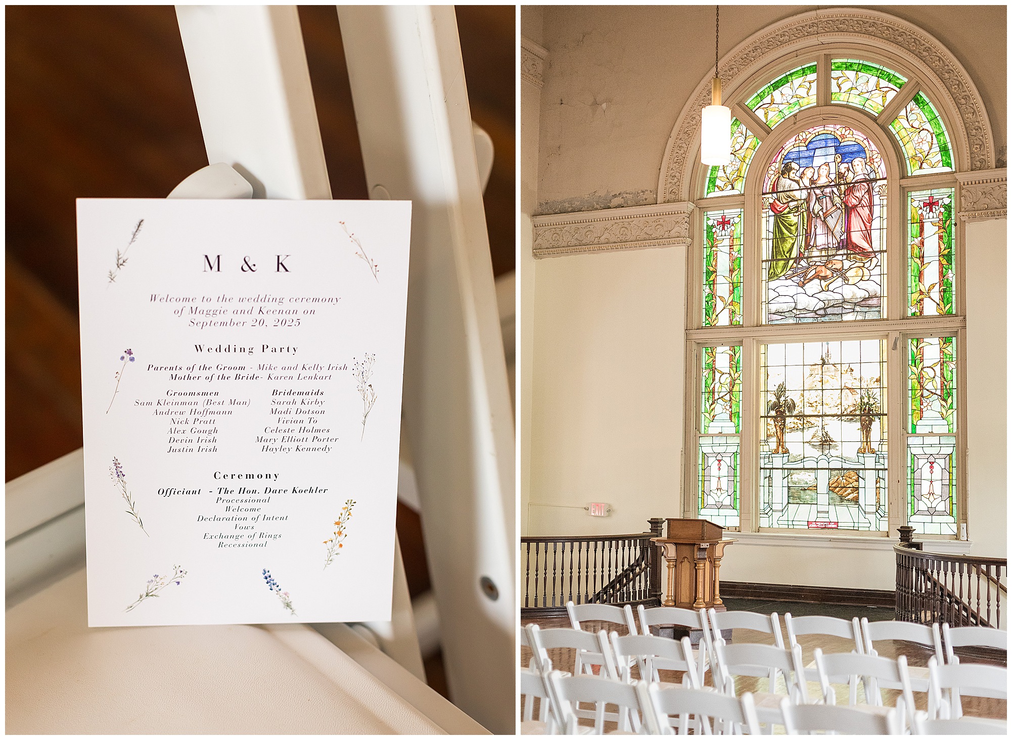 Mid-September weddings in Springfield are kind of magic, and Maggie & Keenan’s day was no exception. The air felt warm but comfortable, the light was soft, and there was that unmistakable feeling that something really special was about to happen. They chose The Conservatory at the Historic Ursuline Academy for their ceremony — a beautiful, classic space tucked right into the heart of the city that felt intimate, elegant, and perfectly “them.”